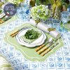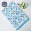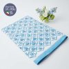 Khăn bàn nền trắng với hoạ tiết xanh biển đan và hoa xanh hiện lên từng ô đan rất Classic English.