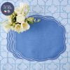 Khăn lót đĩa 42x36cm với thêu chấm trắng và viền trắng trên nền xanh biển x 4 chiếc