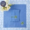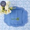 Khăn lót đĩa & khăn ăn xanh biển thêu tay hoa linh lan (set 4 người).