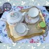 Khay gỗ với khung uốn như nước bồng bềnh dòng to đựng được nhiều decanter, chai vang, whisky hay bộ tách và ấm với mạ vàng kinh điển Ý.