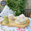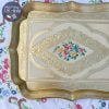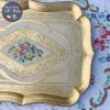 Tông màu sơn lacquer kem nhạt đan xen với mạ vàng tinh xảo và khắc trong lòng khay để nổi bật tài năng vẽ hoa rất nghệ nhân.