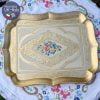 Tông màu sơn lacquer kem nhạt đan xen với mạ vàng tinh xảo và khắc trong lòng khay để nổi bật tài năng vẽ hoa rất nghệ nhân.
