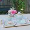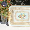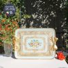 Đường bo khay xanh ngọc biển pha tài tình của nghệ nhân Florence đi kèm mạ vàng siêu đẳng của người Ý & phần tài năng nhất của nghệ nhân nổi bật trên những nét vẽ bó hoa hồng cổ điển e ấp trong trung tâm khay.