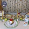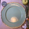 Bạn đang ngắm tông màu xanh bạc hà với mạ vàng uốn lượn nổi bật bàn ăn.