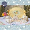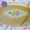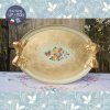 Tông xanh dịu nhẹ khi kết hợp với hoa hồng vẽ tay & những đường chạm khắc chi tiết trong lòng khay như quả chám tạo bố cục khay đẹp sang. Tay cầm nơ điệu đà. Đây là mẫu khay rất to XL cho những bộ trà 6 duos/ 6 trios.
