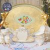 Tông xanh dịu nhẹ khi kết hợp với hoa hồng vẽ tay & những đường chạm khắc chi tiết trong lòng khay như quả chám tạo bố cục khay đẹp sang. Tay cầm nơ điệu đà. Đây là mẫu khay rất to XL cho những bộ trà 6 duos/ 6 trios.