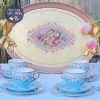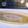 Khay gỗ Florence Oval XXL hồng phớt nhẹ cổ điển kết hợp với hoa hồng vẽ tay & những đường chạm khắc chi tiết trong lòng khay như quả chám tạo bố cục khay đẹp sang. Tay cầm nơ điệu đà. Đây là mẫu khay rất to cho những bộ trà 6 duos/ 6 trios.