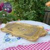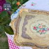 Khay gỗ Florence tay chìa xám vẽ hoa.