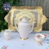 Tông màu sơn xám cổ hoà quện với mạ vàng kinh điển Florence và toát lên nét vẽ tài hoa của bậc thầy vẽ khay những bông hồng, tulip, hoa lan Nam phi mãn nhãn.