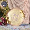 Khay gỗ Florence tròn với mạ vàng và khắc chìm hoa văn tiêu biểu của thủ phủ sản xuất khay và đường nhấn bo màu tím lilac vành khay dành cho bạn yêu tối giản nhưng đẹp tiểu tiết là.