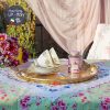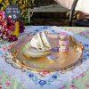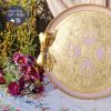 Khay tròn to đẹp xinh đựng được bộ tách 6 người, bộ đồ uống, bày hoa quả, chai rượu và ly.