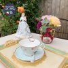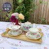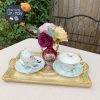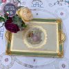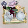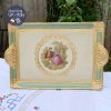 Khay gỗ thủ công do nghệ nhân Ý tại thành phố Florence đục, khắc trạm trổ hoa văn và mạ vàng tinh tế với viền khay tông màu xanh xô nhẹ nhàng và cặp đôi trẻ đang dạo trong vườn ‘yêu’.