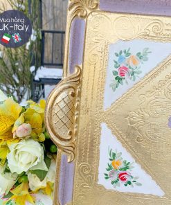 Sang trọng cổ điển bởi đường viền bo trắng cổ trên nền mạ vàng kinh điển chỉ có nghệ nhân Florence mới làm được, những bông hoa vẽ tay độc đáo tại trung tâm khay cũng làm cho người sở hữu đắm đuối.