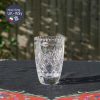 Lọ hoa pha lê Royal Doulton hình trụ thon nhẹ đáy với khắc lõm chùm pháo hoa tạo độ sắc sảo và hút ánh sáng cầu vồng bẩy sắc.