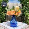 Lọ hoa pha lê thổi đúc hoa thủ công UK đẹp rạng rỡ căn phòng dành cho anh chị em yêu tông màu xanh da trời dáng cổ vút lên khác lạ.