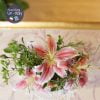 Lọ hoa thuỷ tinh sữa hồng vẽ tay bầu tròn Victorian cổ.