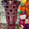 Lọ pha lê xưa Bohemia màu đỏ việt quất cao 35cm đường kính 17cm. Hàng chính hãng UK