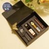 Gift set kèm chai Cognac Hine uống kèm khi châm điếu cigar, diêm & dụng cụ cắt cigar.