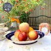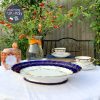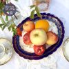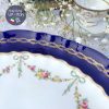 Chiếc mân quả hay còn gọi là đĩa chân thấp với tông màu xanh cobalt cổ điển được đúc thiện nghệ khuôn ôm cong nhẹ & lòng đĩa vuốt như những cánh hoa chạy quanh đĩa. Trên nền gốm xanh cobalt, dải lá nguyệt quế được vẽ công phu với những oằn mình của thợ vẽ mạ vàng 22ktc & rồi phần điểm tô nắn nót những dải hoa hồng & duyên dáng cài những chiếc nơ chạy quanh mặt đĩa nổi bật trên nền gốm trắng vừa phải nhưng tạo sự khác biệt cho tinh hoa 1 thời. Chiếc đĩa khuôn hình bầu dục đẹp mắt và được hoàn chỉnh với viền mạ vàng dày dặn tạo độ Chic & Luxe cho không gian.
