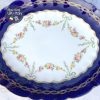 Chiếc mân quả hay còn gọi là đĩa chân thấp với tông màu xanh cobalt cổ điển được đúc thiện nghệ khuôn ôm cong nhẹ & lòng đĩa vuốt như những cánh hoa chạy quanh đĩa. Trên nền gốm xanh cobalt, dải lá nguyệt quế được vẽ công phu với những oằn mình của thợ vẽ mạ vàng 22ktc & rồi phần điểm tô nắn nót những dải hoa hồng & duyên dáng cài những chiếc nơ chạy quanh mặt đĩa nổi bật trên nền gốm trắng vừa phải nhưng tạo sự khác biệt cho tinh hoa 1 thời. Chiếc đĩa khuôn hình bầu dục đẹp mắt và được hoàn chỉnh với viền mạ vàng dày dặn tạo độ Chic & Luxe cho không gian.
