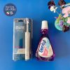 Lắc bình để 2 màu trong lọ hoà thành 1 màu rồi đổ ra nửa nắp đậy của lọ Dentyl và súc miệng trong 30 giây