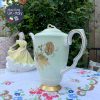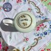 Màu xanh bạc hà mát dịu êm đềm toả sáng bông hồng vàng 22kt không phổ biến tìm thấy trên tách chén sứ xương.
