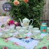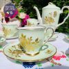 Set trà, cà phê 15 món Salisbury xanh bạc hà hoa hồng 22kt.