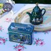 Hộp đựng sắt xanh đậm với design truyền thống đẹp mắt. Dùng xong ta lại đựng đồ lỉnh kỉnh hay đựng trà.