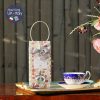 Hộp thiết kế lịch lãm hoa hồng kèm ruy băng xám và lộ lọc trà mạ bạc.