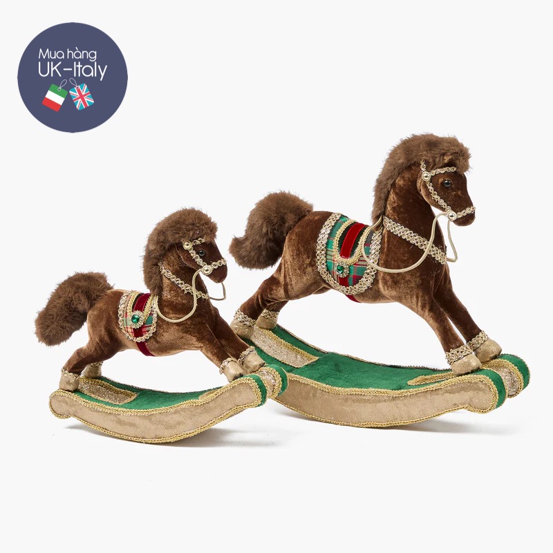 Ngựa nâu bằng bọt biển, nhựa phủ nhung và trang trí chi tiêt bắt mắt bập bênh theo đôi dành cho bạn muốn set up bàn tiệc giáng sinh đẹp, hay decor góc nhà, bàn làm việc, giá bày và trên bàn tiệc bắt mắt, trung tâm thu hút ánh nhìn.
