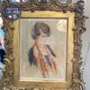Tranh vẽ màu nước cổ đẹp lạ & khung tranh gỗ thế kỉ 19 hiếm tinh xảo vẫn còn nguyên gesso.