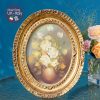 Tranh vẽ tay hoa hồng kem vàng kèm khung Oval.